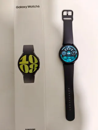 Reloj inteligente Samsung Galaxy Watch 6 LTE en color negro. Caja original y cargador. - Conectividad LTE para llamadas y datos sin teléfono. - Diseño elegante y moderno. - Correa cómoda y ajustable. Lo vendo porque quiero uno con más autonomía.