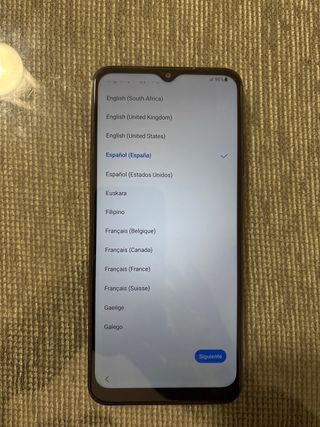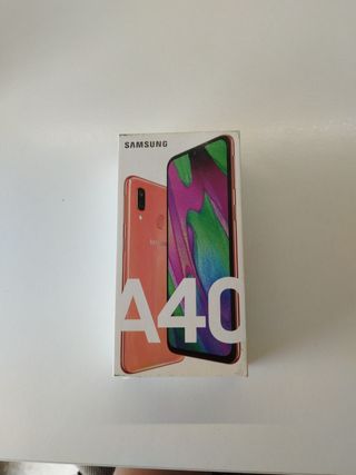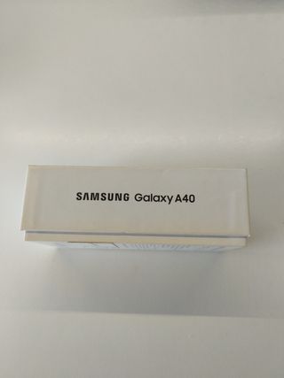 Teléfono móvil Samsung Galaxy A40 con caja, cargador de Samsung, auriculares y la pantalla original que trajo el telefono. El teléfono esta sin utilizar, haria falta llevarlo a una tienda de electronica porque pide la cuenta del antiguo dueño.