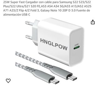 Cargador rápido de 25W y cable USB-C original de 1 metro. - Cargador blanco. - Cable blanco.