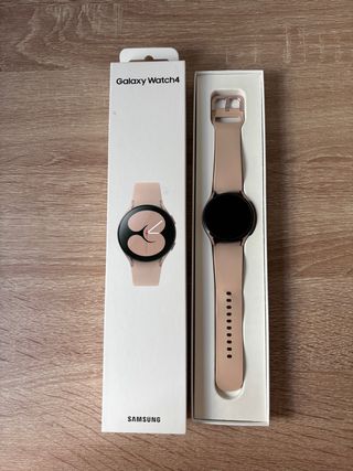 Reloj inteligente Samsung Galaxy Watch 4 en color rosa. - Diseño elegante y moderno. - Correa ajustable S/M. - Pantalla redonda 40mm. - Incluye cargador original. - Incluye vidrio templado en pantalla y otro de repuesto. - Como nuevo, muy buen estado.