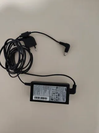 Adaptador de corriente Samsung. - Cable de alimentación negro. - Enchufe europeo.