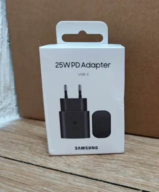 Cargador de pared Samsung 25W PD, completamente nuevo y precintado. - Adaptador de corriente USB-C. - no incluye cable. - Carga rápida. Precio no negociable. Solo hago envíos wallapop.
