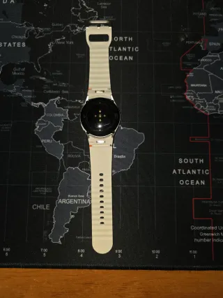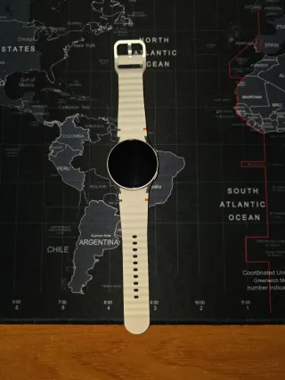 Reloj inteligente Samsung Galaxy Watch S7 con correa blanca y detalles plateados. Está nuevo utilizado dos veces contadas, la caja la tendría que buscar pero la tengo, el cargador lo tengo localizado - Diseño elegante y moderno. - Correa de material duradero.