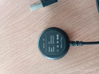 Cargador para reloj modelo S7. - Conexión USB. - Diseño circular. - Cable negro.
