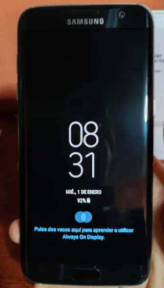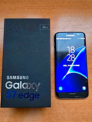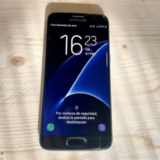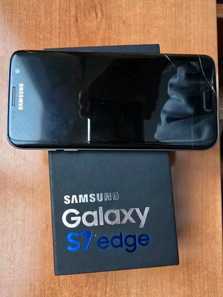 Teléfono Móvil Samsung Galaxy s7 edge de 32 GB de memoria en color negro. Pantalla de 5,5" Quad HD Super AMOLED. Cámara trasera de 12 MP y delantera de 5 MP. Sistema operativo Android 8.0. Capacidad de batería de 3600 mAh. Incluye cargador y cable para carga. Se puede instalar una tarjeta nanoSIM y una tarjeta microSD. En perfecto estado de funcionamiento. Presenta una pequeña rotura en la pantalla en la parte inferior, pero que apenas se nota y no afecta a su funcionamiento. Resistente al agua y al polvo (IP68)