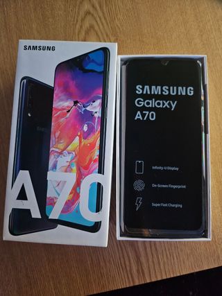 Teléfono móvil Samsung Galaxy A70. Ni un rasguño sólo ( unas letras) en la parte trasera. Sin cargador. Regalo carcasas Doble Sim. - Pantalla Infinity-U. - Sensor de huellas en pantalla. - Carga súper rápida.