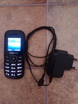Teléfono móvil Samsung, color negro. Incluye cargador. Está en buen estado. - Modelo básico. - Funciona con tarjeta SIM. - Perfecto para llamadas y mensajes.