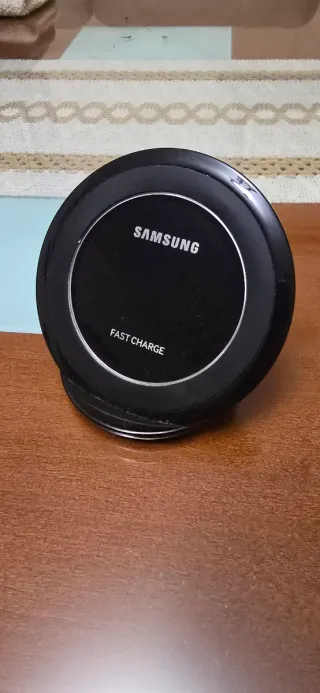 Cargador inalámbrico Samsung en color negro.Necesita para la alimentacion cable micro-usb - Diseño circular. - Indicador de carga rápida.
