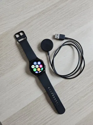 Vendo mi Samsung Galaxy Watch 4 de 44mm, en color negro. Está en excelentes condiciones. - Incluye cargador y caja original. - Correa de silicona negra.
