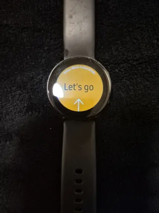 Reloj inteligente Samsung Galaxy Watch Active en color negro. Incluye caja y cargador original, y dos juegos de correas nuevas adicionales. Ideal para un estilo de vida activo. Detalle: Pantalla parcialmente despegada requiere pegarse. Esta conectada y operativa, solo debe pegarse los bordes de la circunferencia que ha perdido adherencia. Duracion de la batería alrededor del 60% de cuando se compró. Tiene 3 años de uso - Diseño deportivo y moderno. - Correa ajustable.