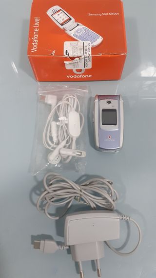 Incluye lo que se ve en las fotos ( teléfono, auriculares, cargador del móvil y caja original). Los auriculares y el cargador están en perfecto estado. AL TELÉFONO LE FALTA LA BATERÍA Y DESCONOZCO SI FUNCIONA. Para reparar o aprovechar sus componentes. atrezzo, vintage, clásico, colección, coleccionistas, Samsung, mobil, móvil, retro, antiguo, electrónico, electrónica, reparar,