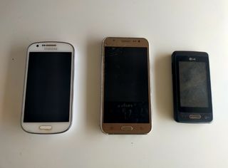 Se vende móviles antiguos no encienden para piezas o el que pueda repararlos.(No tienen cargador solo lo tiene el LG)pero si tienen la batería. El blanco es Samsung Galaxy Express El marrón es Samsung J5 El negro es LG kP502 25€ los 3 móviles. Hago envíos.