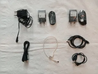 Cargadores y enchufes para móvil: Conectores para móviles de varias marcas: Un enchufe Samsung, dos con adaptador de viaje de LG, un cable USB Samsung y otros tres cables sin marca a la vista. Usados y nuevos.