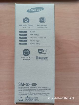 Teléfono móvil Samsung Galaxy A5. Diseño elegante y compacto. - Pantalla súper amoled de 5.2 pulgadas - Cámara principal de 13 MP. - Batería de 2900 mAh. - Procesador Samsung Exynos 7580 1.60GHZ - Sistema operativo Android 5.1 Lollipop - Almacenamiento 16 GB - RAM 2 GB Viene con cable cargador y pantalla protectora pero sin caja