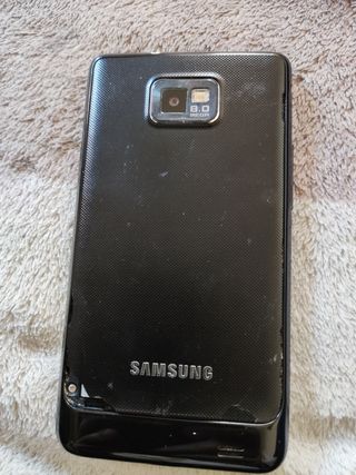 Samsung S2. No enciende, no carga. La tapa de atrás de la batería como se ve en la foto está rota. Se envía sin cargador