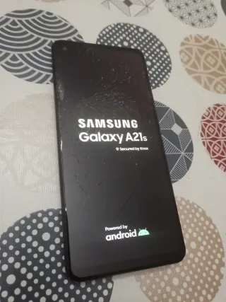 Samsung A21s.. Enciende, carga, pero tiene código y la pantalla agrietada como se ve en las fotos.. El táctil, le funciona por toda la pantalla en que este así agrietada.. Lo vendo por 35e sin cargador..