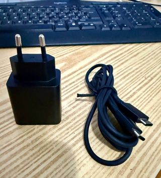 Adaptador de corriente y cable de carga en muy buenas condiciones Apple (20W) y Samsung (45W) se vende porque he adquirido uno de más vatios - Color negro. - Conector USB Tipo C.