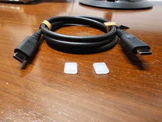 Cable de conexión USB C a USB C. Incluye dos protectores de plástico para los conectores. - Conectores USB Tipo C. - Cable de carga y datos.