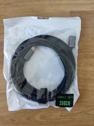 Cable USB tipo C a USB tipo C largo, longitud 3m, reversible. Carga rápida + datos hasta 20Gbps. Nuevo sin abrir