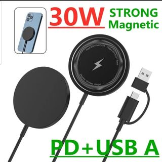 Cargador magnético iPhone de carga rápida. La potencia máxima de salida es 30W Compatible con iPhone 15, 14, 13, 12 Pro, AirPods, PD. Conector Tipo C + USB