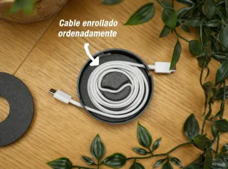 Este organizador de cables USB-C cuenta con un diseño circular y compacto. Es ideal para mantener tus cables ordenados y evitar enredos. - Mecanismo retráctil con botón. - Color negro texturizado. - Cable carga rápida tipo C *Se puede personalizar color, logo y nombre*
