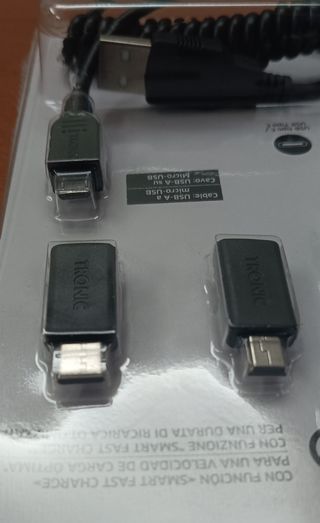 Cargador para móviles,tablet, ordenador etc.. con 2 adaptadores , conexión USB para Micro usb-Mini usb- USB a Tipo C con función smart fast charge para una velocidad de carga óptima . Fabricación y calidad Alemana. ( 2 unidades en Stock)