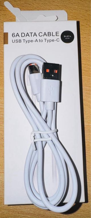Cable de datos USB-A a Tipo-C con capacidad de 6A. Ideal para carga rápida y transferencia de datos. - Conector USB Tipo-A. - Conector USB Tipo-C. - Soporta carga de 6A. 100% de calidad No daña a las baterias