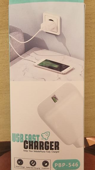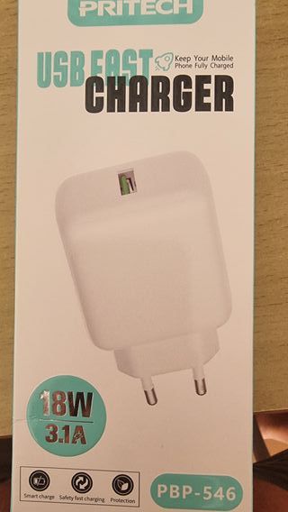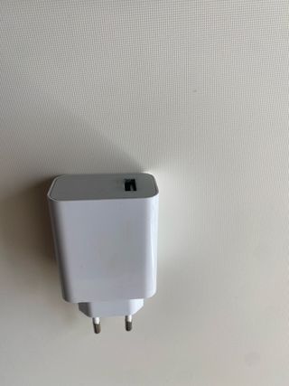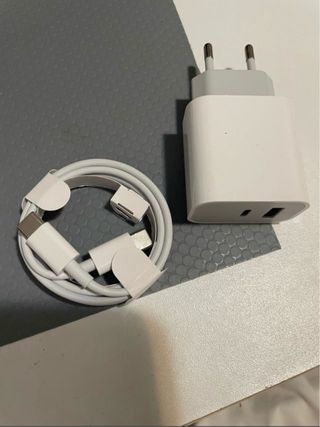 Cargador de 20 vatios. Tiene una entrada USB tipo C y otro tipo B (el normal). Nuevo sin usar.