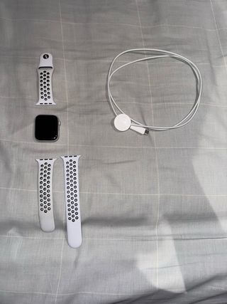 Reloj inteligente Apple Watch SE edición especial Nike. (44mm) - 90% salud de la bateria - Caja de aluminio plateado. - Correas deportiva Nike blanca con perforaciones de 2 tamaños. - Cargador tipo C - Caja y todos sus accesorios originales