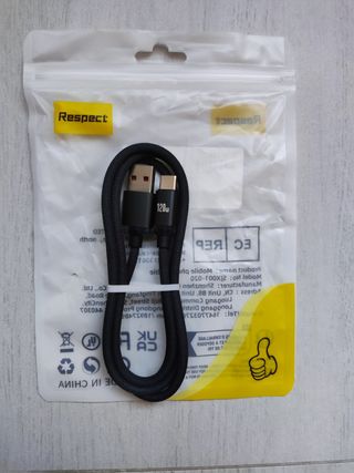 Cable trenzado de carga ultra rápida USB a tipo C. 6 Amperios y hasta 120w. Longitud de 1 metro. Marca Respect. Nuevo!