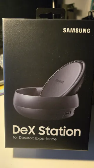 Estación DeX de Samsung para una experiencia de productividad y portabilidad. - Incluye DeX Station, cargador de pared, cable USB y guía de inicio rápido. - Cumple con la directiva RoHS. - Puertos: USB 2.0, Ethernet, HDMI, USB Tipo C.