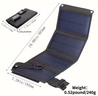 Panel solar portátil de 5V, ideal para cargar tus dispositivos en exteriores. Una batería externa perfecta para poder cargar tus dispositivos, perfecta para momentos que se va la luz, si vas de acampada o al aire libre... - Diseño plegable para fácil transporte. - USB. Se carga por luz solar y puedes cargar móviles, portátil, auriculares... Nueva a estrenar Envío 3€ y de regalo 2 cables tipo C para cargar tus móviles u otros aparatos