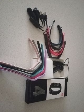 son 6 correas y un cargador originales Xiaomi band 4 además regalo tres relojes de otras marcas que no sé si funcionan con sus cargadoresNEGOCIABLE