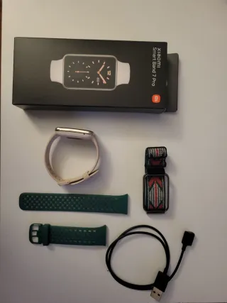 Vendo pulsera de actividad Xiaomi Smart Band 7 Pro comprada en marzo 2024. Puedo compartir ticket, si hace falta garantía aunque funciona perfectamente - la cambio porque me han regalado otro smartwatch. Incluye: - Embalaje original y manual de instrucciones - Cargador original - Dos pulseras de recambio: una verde de silicona y una elástica de colores
