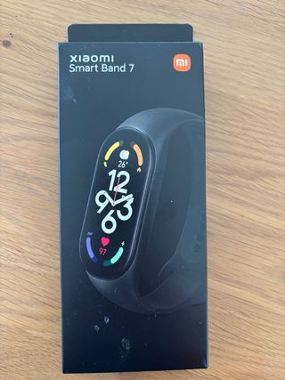 Pulsera de actividad Xiaomi Mi Smart Band 7 en color negro. Se encuentra en buen estado, con caja, cargador, correa e instrucciones incluidas. - Pantalla a color. - Monitor de ritmo cardíaco. - Seguimiento de actividad física.