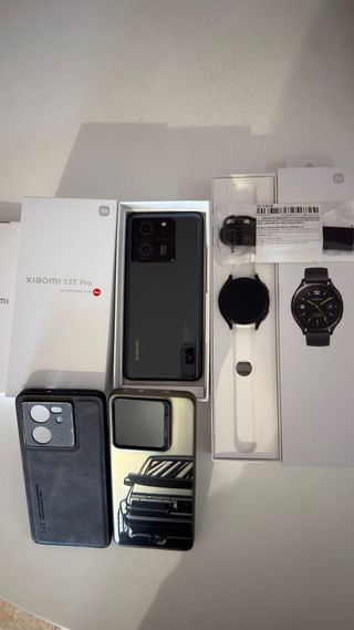 Se vende pack de móvil Xiaomi 13T Pro y reloj inteligente. - Móvil Xiaomi 13T Pro en color negro. - Reloj inteligente Xiaomi Watch 2 en color negro con correa (no original) a estrenar. - Incluye dos fundas para el móvil. - Incluye la caja de los dos productos y cargadores y cables originales. - Tiempo de uso de los dispositivos aprox: 1 año, los dejé de utilizar en agosto de 2025 y fueron comprados en mayo de 2024. Funcionan perfectamente ambos, los cambié por capricho. Todo tuvo un precio de 829€, lo dejo a menos de la mitad con las fundas y cajas etc...