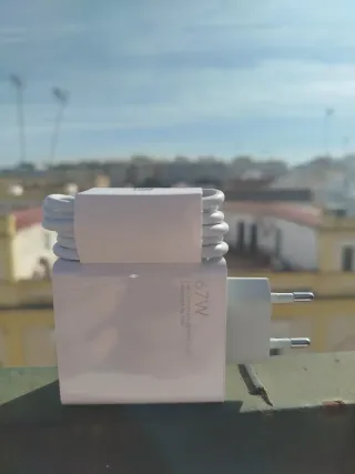 Cargador Xiaomi 67W + Cable USB-C 56 Se vende cargador para Xiaomi de **67W**, completamente nuevo y sin estrenar. Ofrece **carga ultrarrápida**, ideal para aprovechar al máximo la potencia de tu móvil Xiaomi (compatible con modelos como **Xiaomi 11, 12, 13, Redmi Note Pro**, entre otros). También es válido para otros dispositivos de distintas marcas (**OPPO, Huawei, iPhone 15/16, Redmi**, etc.). **INCLUYE:** * Cargador Xiaomi 67W * Cable USB-C de 1 metro 🔋 **Características:** * Carga súper rápida (67W) * Producto nuevo, sin uso * Perfecto como cargador principal o de repuesto 📦 **Entrega en mano o envío disponible**