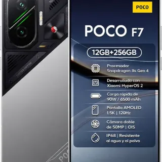 Teléfono móvil Xiaomi Poco F7 en su Edición Limitada. Diseño en color plata y negro. Poco uso 4 meses. Con cristal templado puesto. - Procesador Snapdragon 8s Gen 4. - Desarrollado con Xiaomi HyperOS 2. - Carga rápida de 90W / 6500 mAh. - Pantalla AMOLED 1.5K | 120Hz. - Cámara doble de 50MP | OIS. - Certificación IP68: resistente al agua y al polvo. - 256Gb de almacenamiento - Cargador original incluido 90W (opcional bootloader desbloqueado) Sin garantía ni factura. Solo entrega en mano en Sevilla. Bloqueo a quien pregunte algo ya descrito.