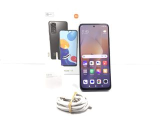 Teléfono móvil Xiaomi Redmi Note 11 en color gris. - 128 GB de almacenamiento. - Incluye cargador, cable USB-C, herramienta para SIM, funda protectora, guía de inicio rápido y tarjeta de garantía.