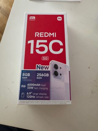 Teléfono móvil Xiaomi Redmi 15C con gran capacidad de almacenamiento. - 8GB de RAM - 256GB - Batería de 6000mAh (típica) - Carga rápida de 33W - Pantalla grande de 6.9 - Tasa de refresco de 120Hz - Soporta NF Viene con clave cargador y carcasa transparente incluida. Precio no negociable. Libre y sin compromisos de permanencia!! Y con 2 años de garantía Precio nuevo 140€, ahorra un 40%