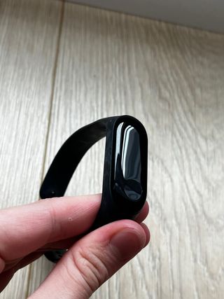 Pulsera de actividad Xiaomi Mi Band 5 con cargador incluido. Sin la pulsera original. - Pantalla a color. - Monitor de ritmo cardíaco. - Seguimiento de actividad física. Tiene un pequeño arañazo en la pantalla que no se percibe a simple vista y no molesta cuando está encendido, se puede observar en la foto.