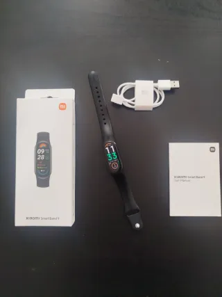 Pulsera inteligente Xiaomi Smart Band 9 en color negro. Incluye su caja original, cargador y manual de usuario. - Pantalla a color. - Correa ajustable. - Usado 1 año.