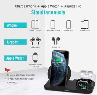 Cargador inalambrico para: Apple Apple Whach Airpoots Contiene: Soporte de triple carga Cable cargador y cabezal NO CONTIENE SU CAJA Si tiene alguna pregunta o necesita mas imagenes acerca del producto no dude en contactar con migo. 😊 Venta presencial en Aranjuez o Madrid, tambien es posible realizar la venta online. ❤️