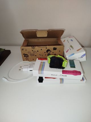 Cargador para smartwatch, con dos juegos de correas originales ya usadas, y unas nuevas