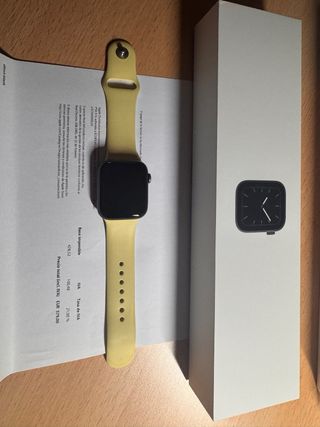 Vendo un Apple Watch SE de 44mm. El reloj está en perfecto estado. - Incluye correa amarilla y varias más. - Caja original incluida. - Incluye cargador original - 74% batería de salud Puedo hacer envíos rápido con inpost