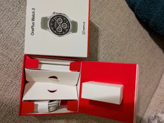 Caja original para el OnePlus Watch 3 en color verde. - Contiene documentos que vienen originales y cable para el cargador.