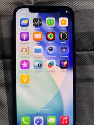 SE HACEN ENVIOS -Iphone 12 de color azul con 128GB de almacenamiento. -Funciona todo correctamente: botones laterales, Face ID, Apple Pay, cámaras... -Incluye caja original del Iphone, funda transparente, 2 cristales templados, cargador y protector de cámaras. -Preguntas sin compromiso.