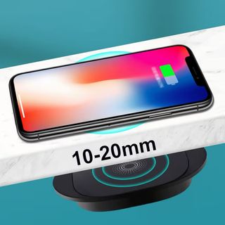 Cargador inalámbrico con diseño invisible. - Permite cargar dispositivos a una distancia de 10-20mm. - Diseño circular con luces indicadoras.
