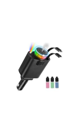 Este cargador para coche cuenta con un diseño moderno y funcional. - Incorpora luz LED con efecto estrella. - Incluye función de aromaterapia. - Dispone de puertos USB C. - Se acompaña de tres frascos de esencias.