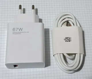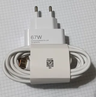 Cargador blanco de 67W con carga super rápida, ideal para tus dispositivos. - Incluye cable USB C de 2 metros - Diseño compacto y moderno.